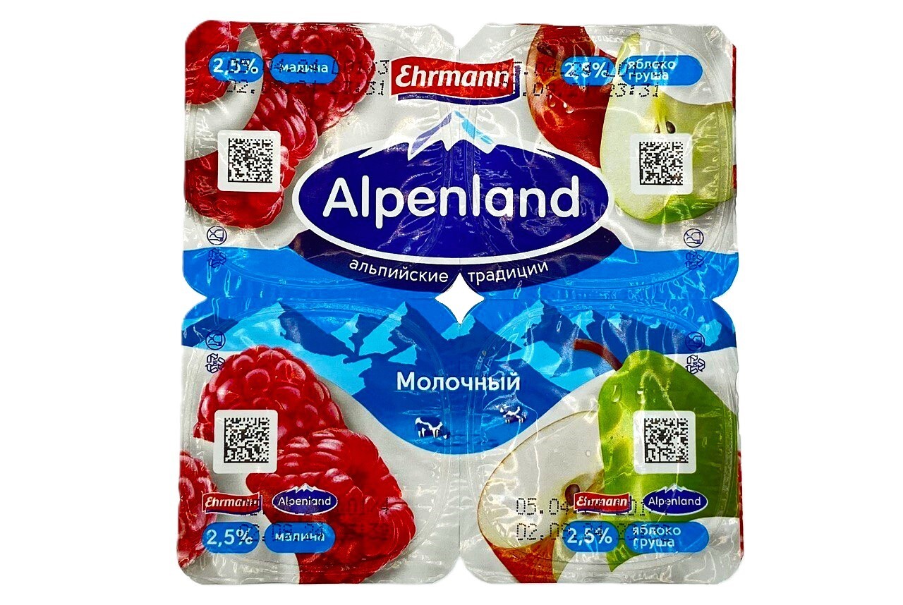Альпенленд Продукт йогуртный 2,5% 95г Россия (малина- яблоко, груша)