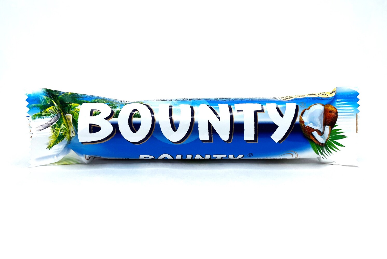 Конфета Баунти с нежной мякотью кокоса, покрытая молочным шоколадом.