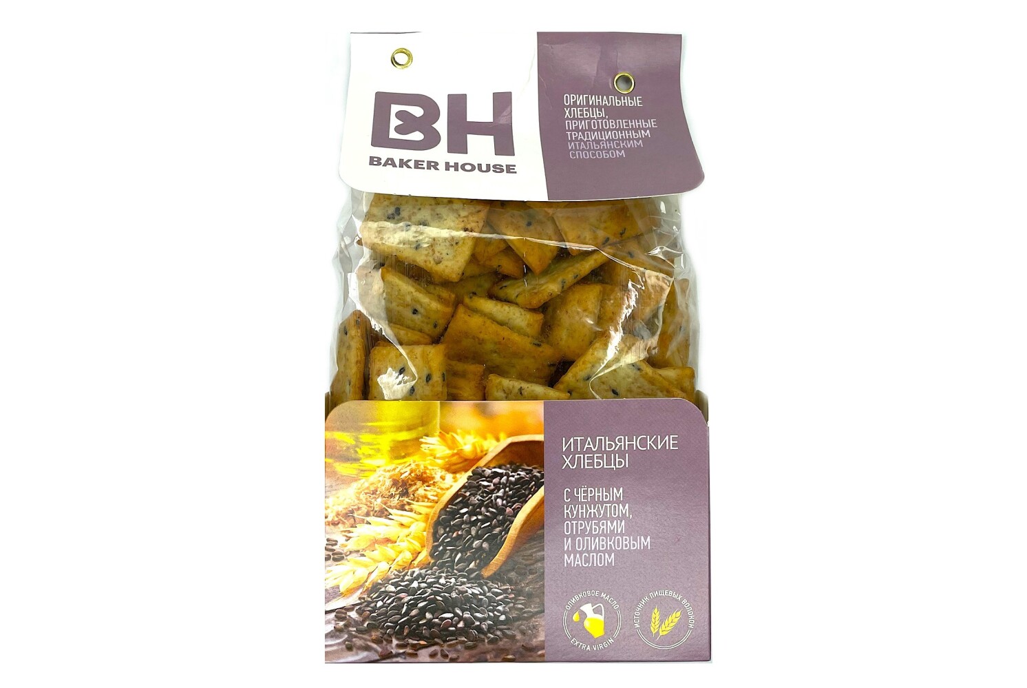 Итальянские хлебцы с черным кунжутом, отрубями и оливковым маслом.