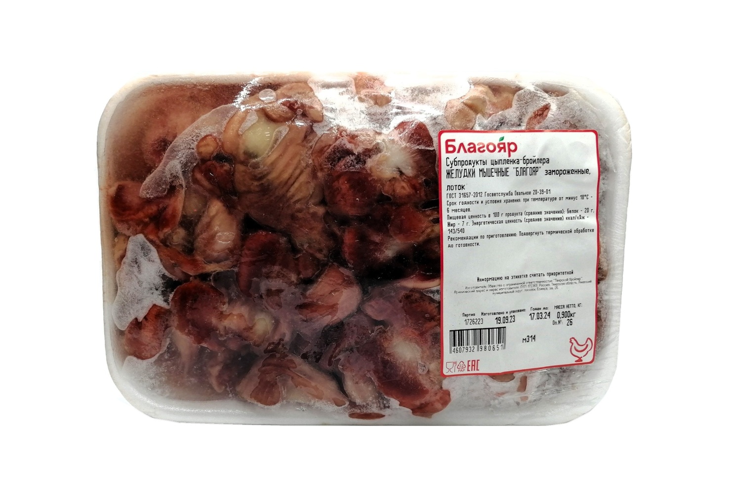 Субпродукты цыпленка бройлера Желудки мышечные Благояр замороженные, лоток.