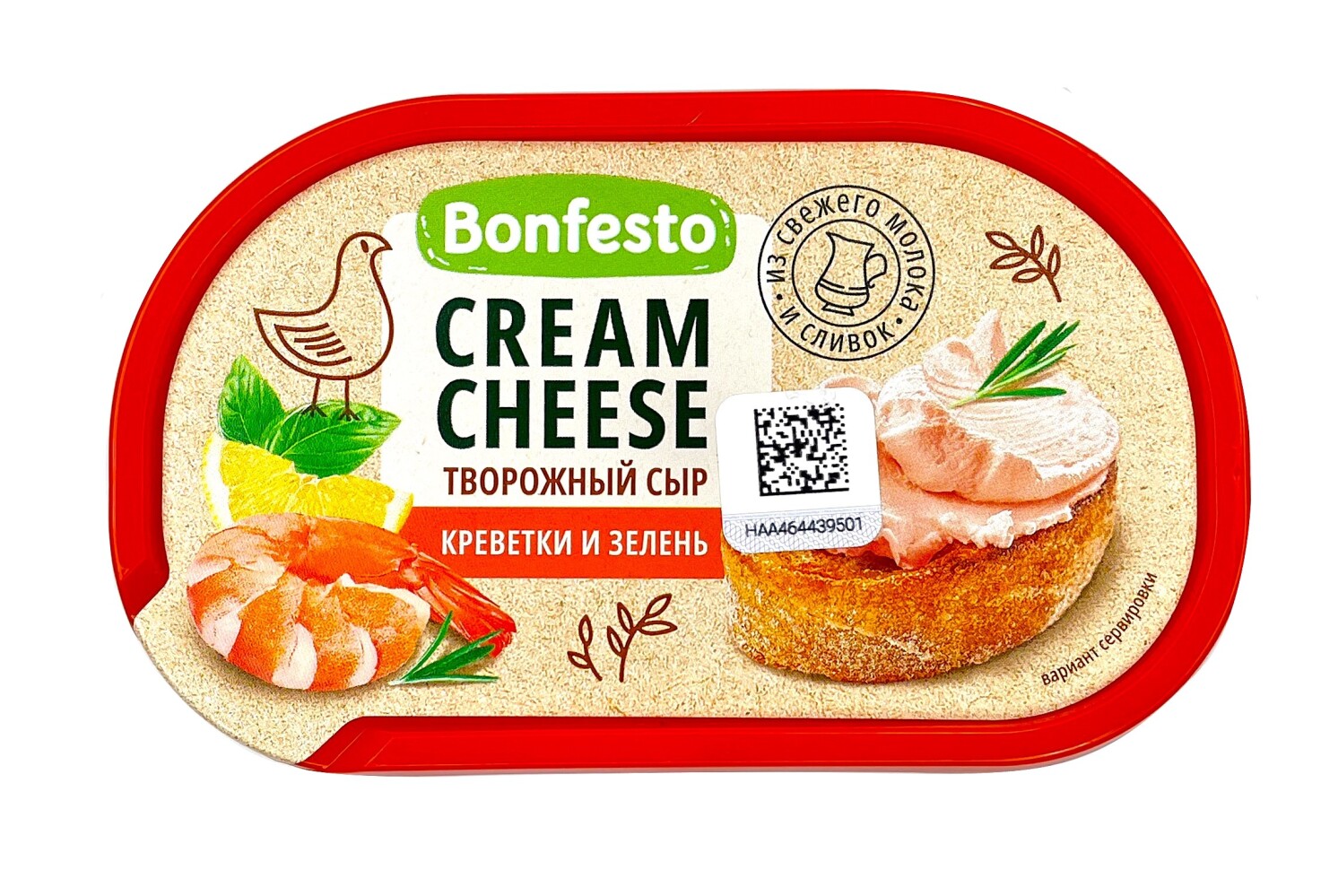 Бонфесто Сыр творожный "Крем чиз" 140г Беларусь (креветки и зелень)