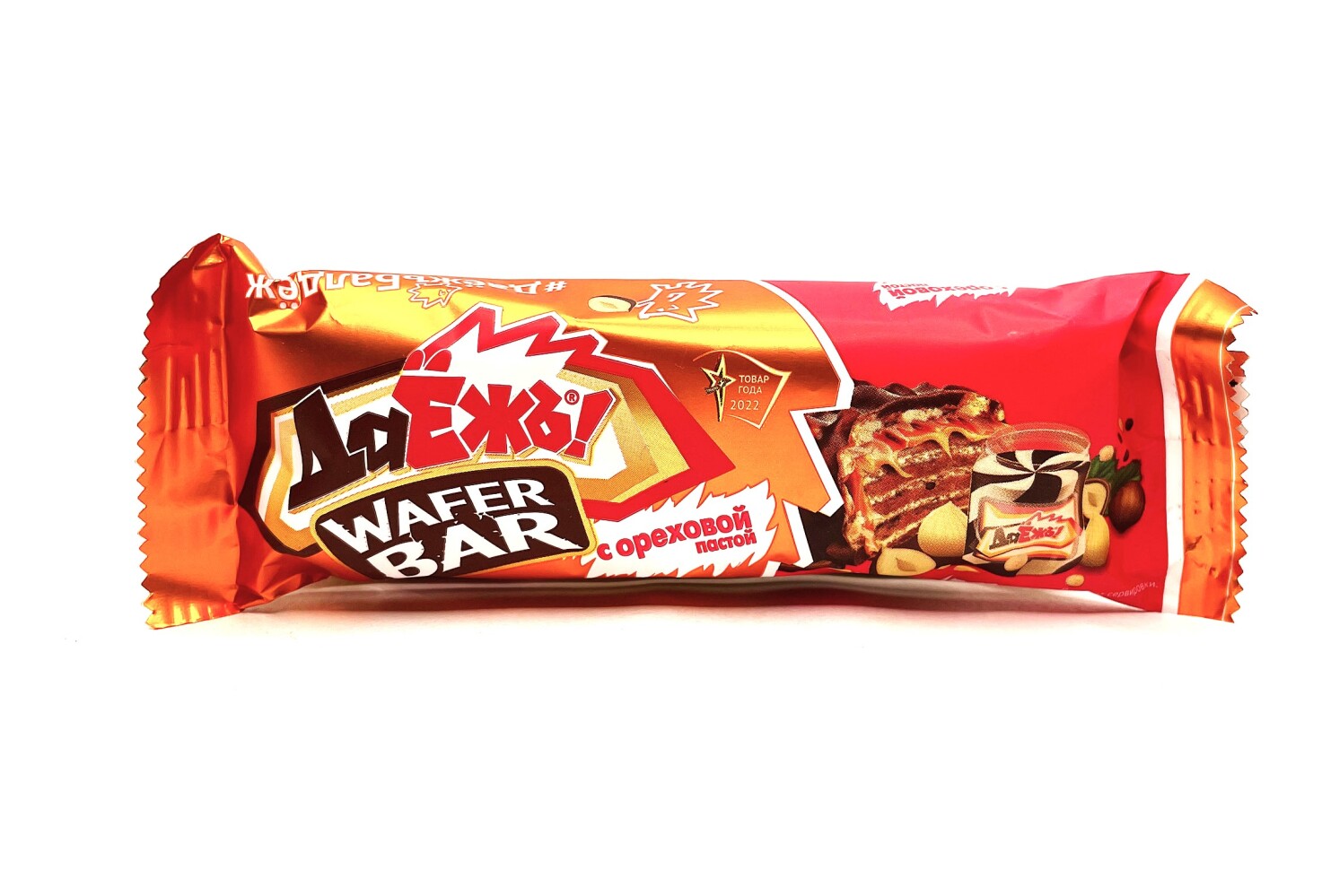 Состав: сахар, масла растительные, в том числе соевое, мука пшеничная, патока, сыворотка молочная сухая, арахис обжаренный дробленый, молоко сухое обезжиренное, какао тертое, арахис обжаренный тертый, продукт экструдированных круп и зернового сырья «Crispy» (криспи) особые (крупа рисовая, мука пшеничная, сахар, экстракт ячменно-солодовый, соль), какао-порошок алкализованный, крахмал кукурузный, разрыхлитель гидрокарбонат натрия, соль, ароматизаторы, регулятор кислотности молочная кислота, эмульгаторы (лецитин соевый, Е492, Е476), агент влагоудерживающий глицерин, антиокислители (аскорбилпальмитат; токоферолы, концентрат смеси).