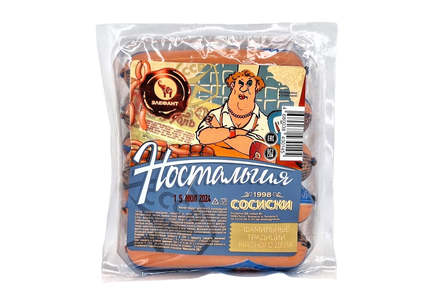Элефант Сосиски Ностальгия вареные 385 гр Россия