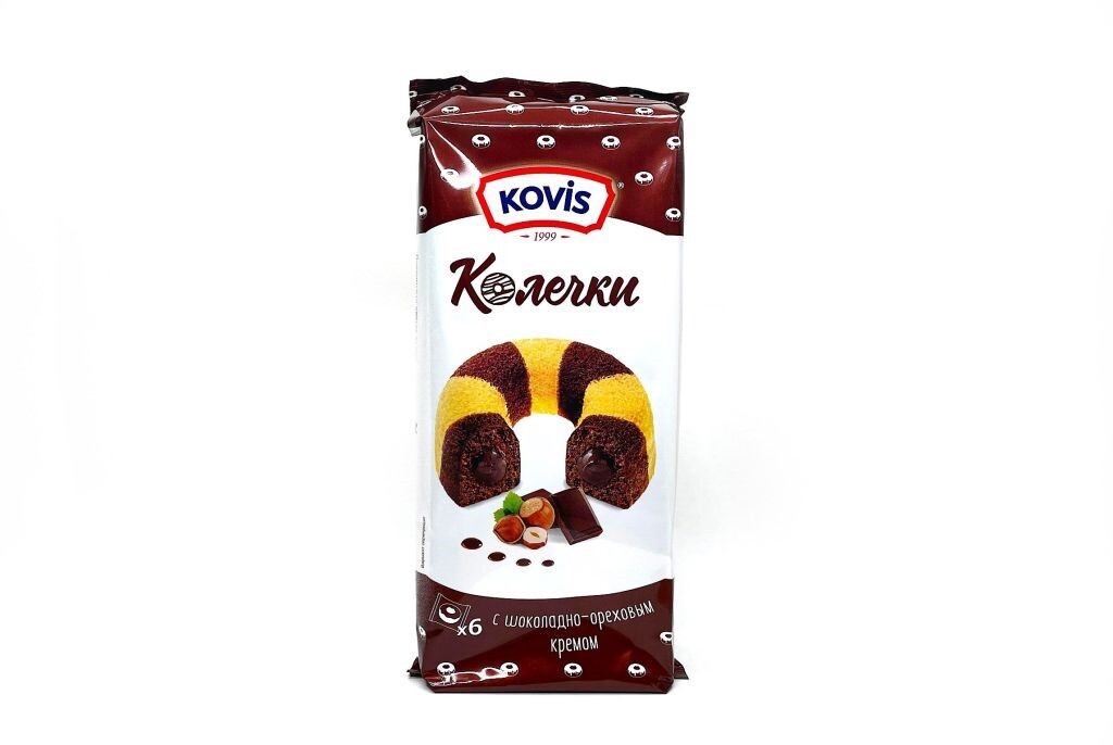 Ковис пирожные бисквитные колечки 240г Россия (с шоколадно ореховым кремом)