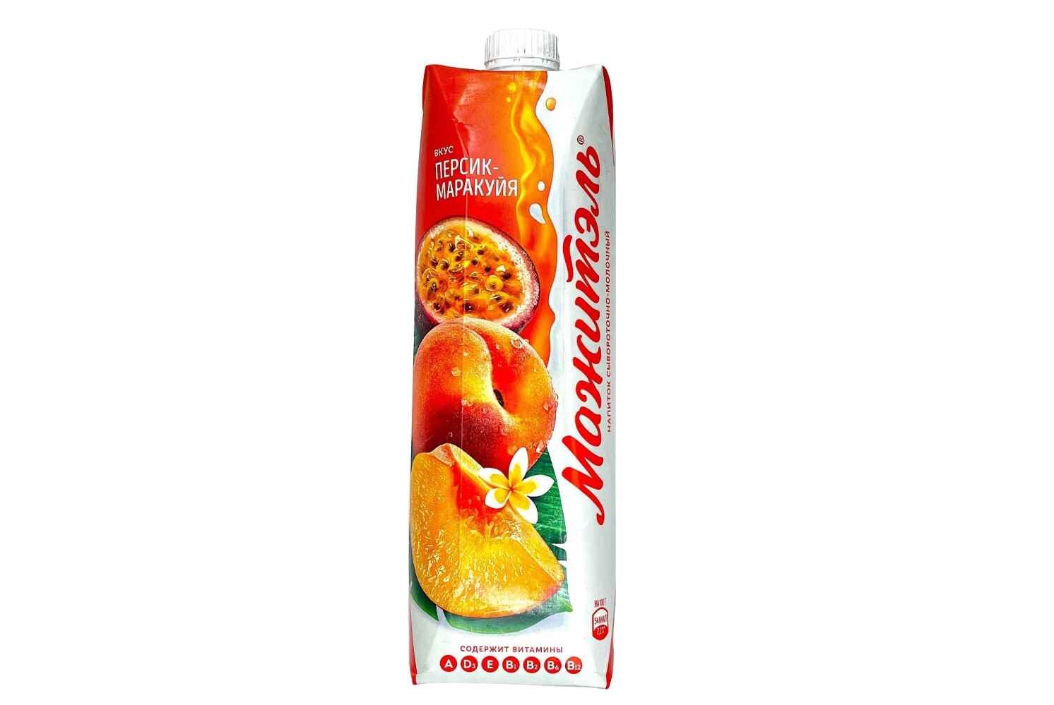 Напиток сывороточно-молочный стерилизованный, обезжиренный, с соком, обогащенный витаминами, со вкусом Персик-Маракуйя