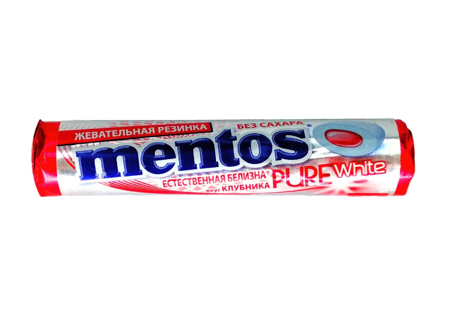 Жевательная резинка со вкусом клубники. Состав: подсластители (Е967, Е420, Е421, Е965, Е951, Е950, Е955), основа резиновая, агент влагоудерживающий (Е422), регуляторы кислотности (Е296, Е330, Е4510, крахмал (рисовый, кукурузный), мальтодекстрин, ароматизаторы, растительное масло, экстракт белого чая, эмульгаторы (Е473, Е3220, загустители (Е466, Е415), глазирователь (Е903), Краситель(Е120), Антиокислитель (Е321).