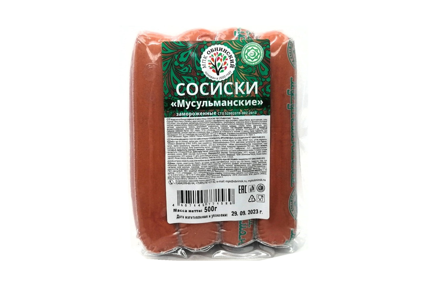 МПК Обнинский Сосиски Мусульманские 500г Россия
