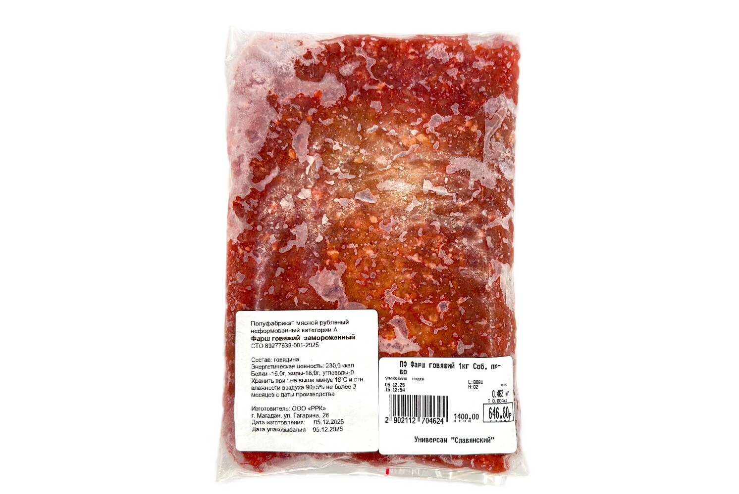 ПФ Фарш говяжий зам. 1кг Собственное производство ООО"РРК"