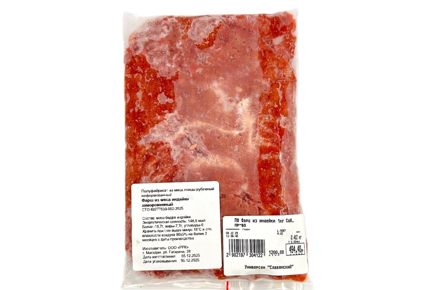 ПФ Фарш из индейки зам. 1кг Собственное производство ООО"РРК"