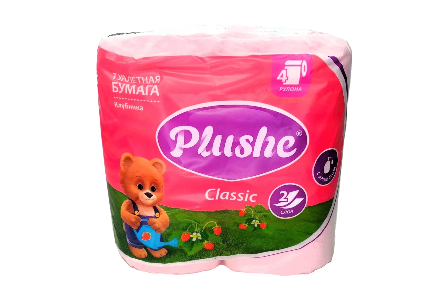 Плюше Бумага туалетная Клубника 2 сл 4 рулона
