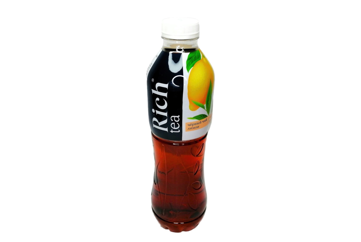 Напиток безалкогольный негазированный "Черный чай лимон". С добавлением лимонного сока. Состав: вода очищенная, сахар, лимонный сок, экстракт черного чая, регуляторы кислотности (лимонная кислота, цитрат натрия 3-замещенный), ароматизаторы натуральные, краситель сахарный колер IV. Пищевая ценность /калорийность на 100мл продукта- углеводы-7г, 86кДж/20rкал