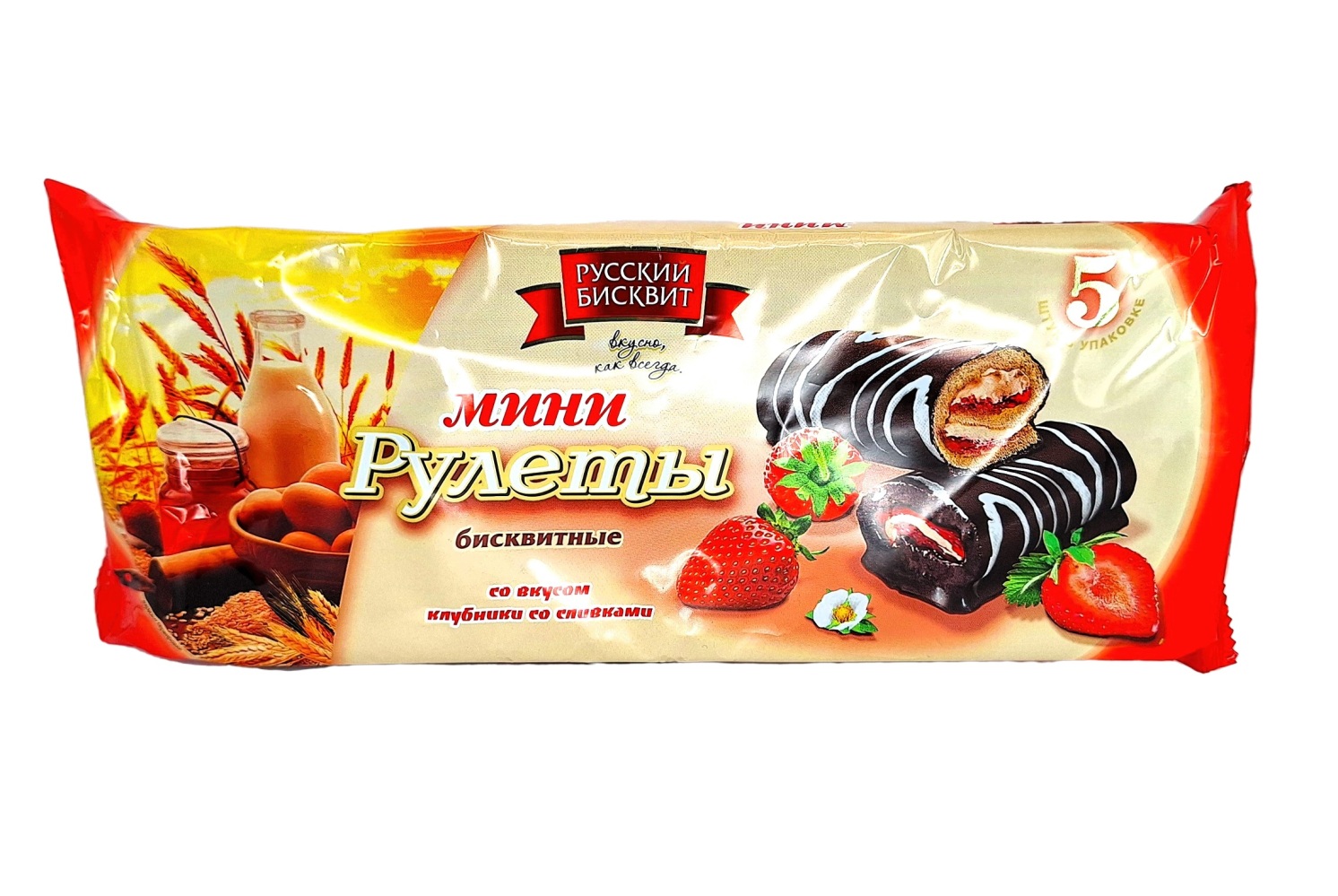 Русский Бисквит Мини рулеты бисквитные 175г Россия (клубника со сливками)