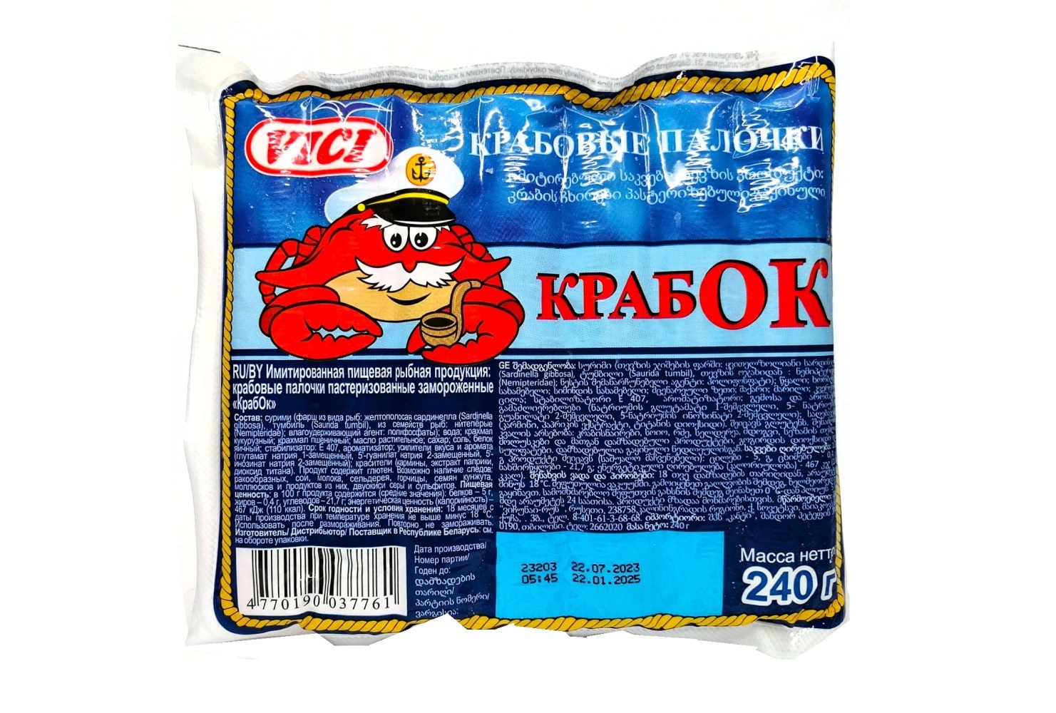 Вичи Крабок Крабовые палочки 180 г Россия