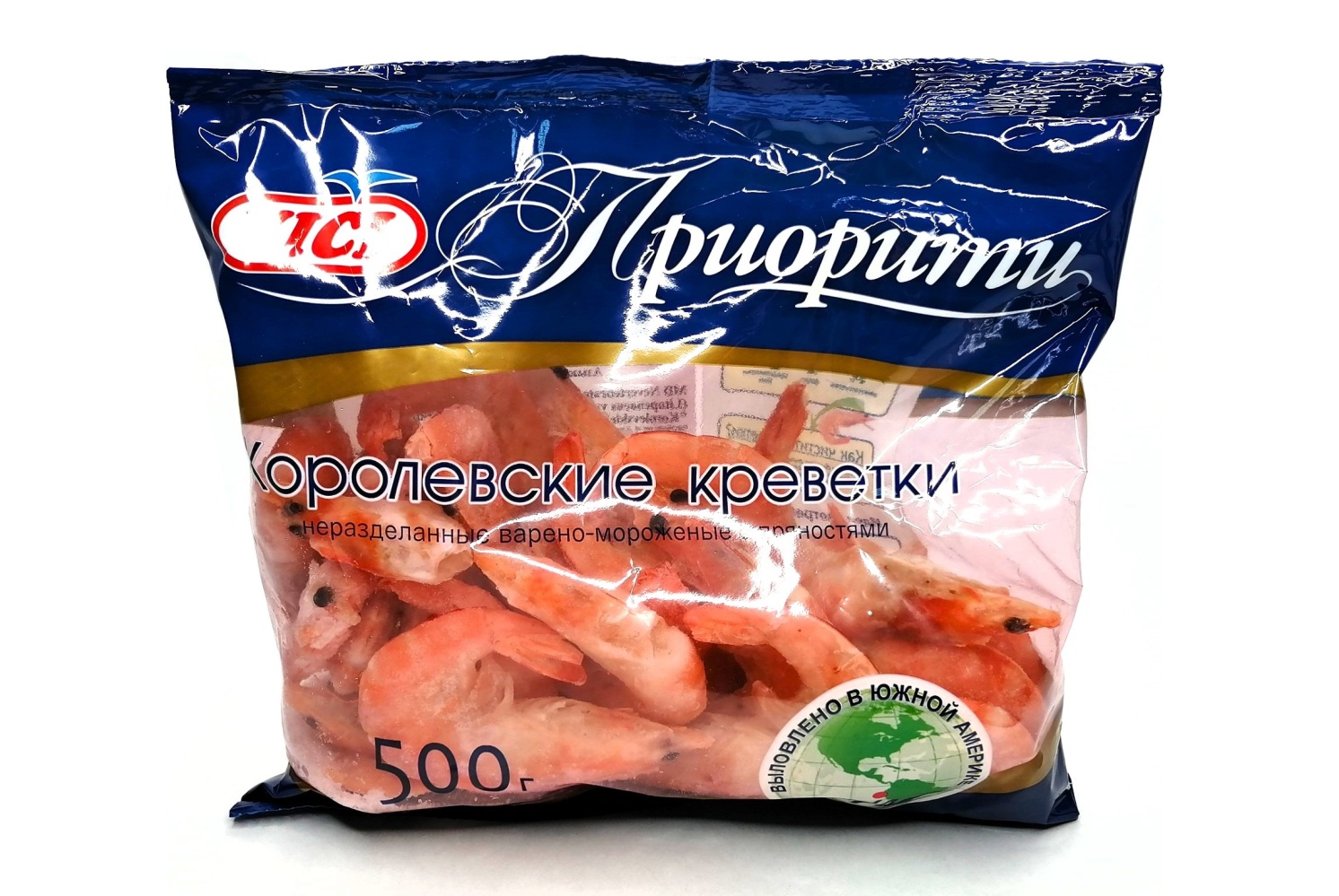 Варёно мороженые водные беспозвоночные: креветки белоногие неразделанные с пряностями Королевские Приорити. Состав: креветки белоногие неразделанные, вода, соль, пряности, лимонная кислота, трифосфат натрия, пиросульфит натрия. Пищевая ценность (средние значения) 100г продукта: белки - 18,9г, жиры - 0,9г, углеводы- 0,8г.